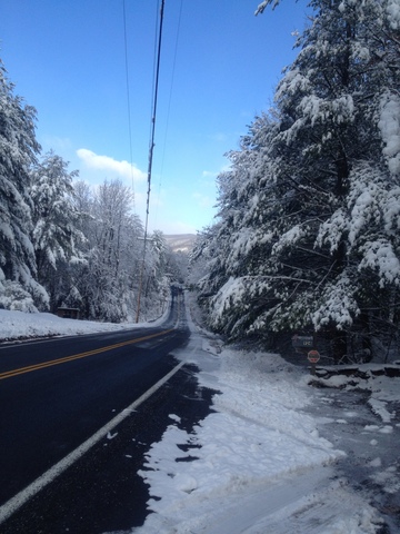 I was walking on a country road with my daughter and her two dogs when we passed a stone wall. The first line of Robert Frost's poem, "Mending Wall," came to me: "Something there is that doesn't love a wall." When I got back to the house, I looked it up and wrote out the first six lines into my journal. I've decided to memorize it. It's a long poem so I'll work it slowly, two lines a day. I've also pasted a link on a Facebook status together with a couple of photos: the pellet stove ablaze and light snow falling outside the window at 7 a .m. this morning. In the distance, a flock of turkeys and the black barn cat chasing them is barely visible in the dawning light. This landscape seemed the perfect antidote to the news that a nursing mother had been turned away at the airport and separated from her baby.